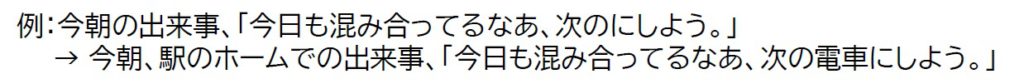 文字数で言うと、「、駅のホームでの」と「電車に」、この11文字を追加するだけです。この状態で英訳すれば、場面も内容も誤訳されることがない形になります。このぐらいの情報の追加は必要と思います。