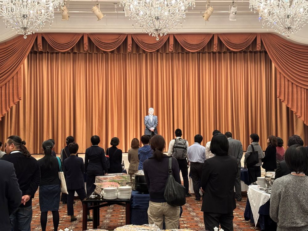 交流パーティは、参加者の皆さまがゆとりを持って交流できるよう、広いスペースを確保したロイヤルホールヨコハマ「ヴェルサイユの間」にて開催いたしました。本パーティは、翻訳祭を支えてくださるスポンサー様の多大なるご協力のもと実現したものであり、当日はスポンサー様からのお言葉も頂戴いたしました。会場全体が前向きな空気に包まれ、参加者同士の活発な交流が生まれていました。